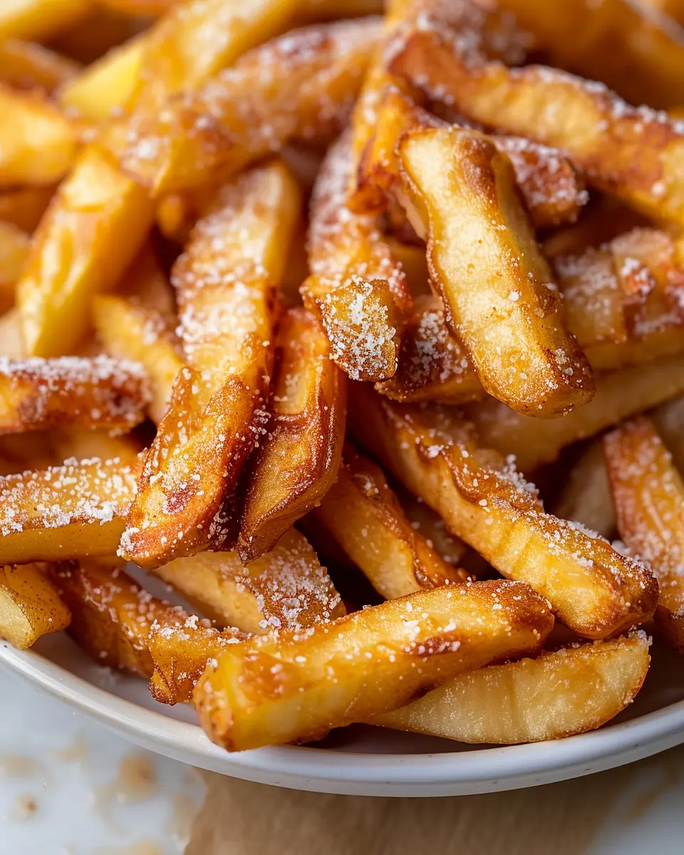 Consider serving these delightful apple fries with a dip—honey, caramel sauce, or even a light yogurt dip can make for an excellent pairing.