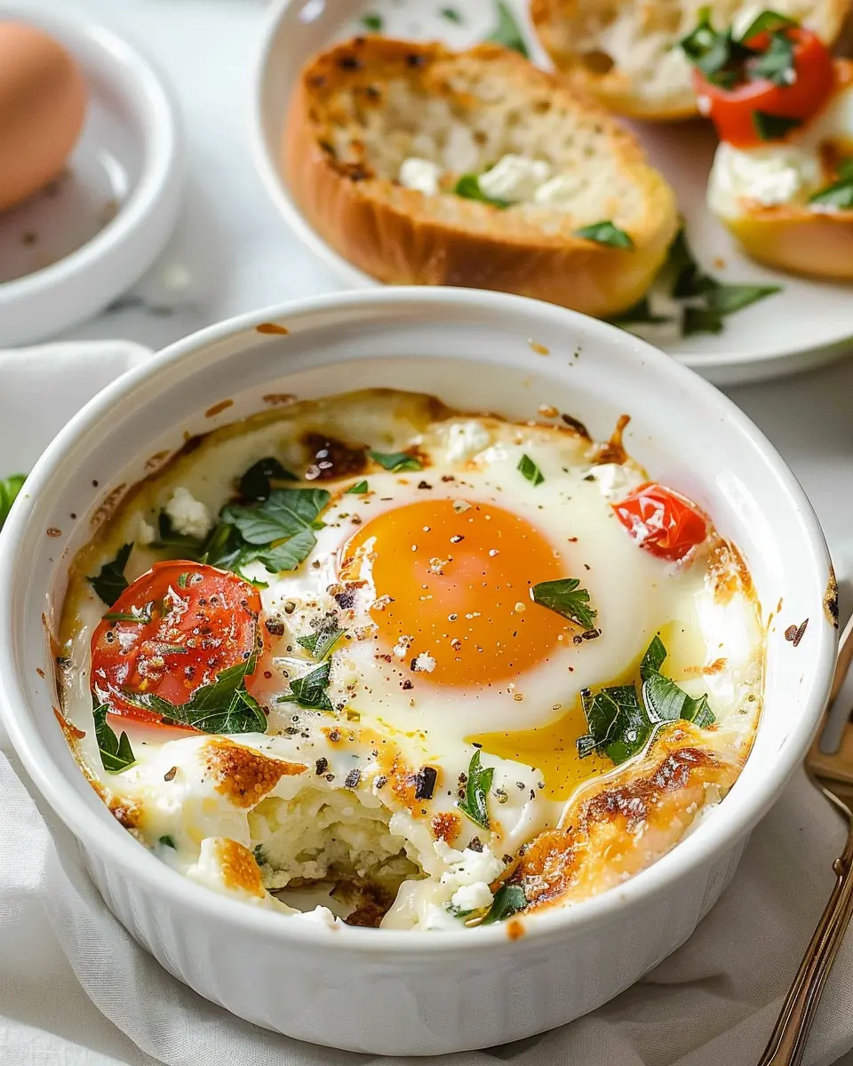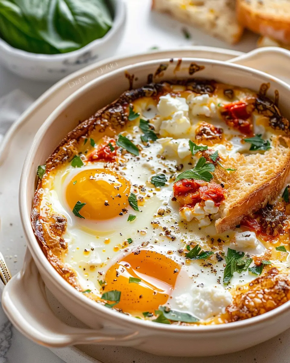 PrintBaked Feta Eggs Recipe: Easy & Hearty Breakfast Delight
