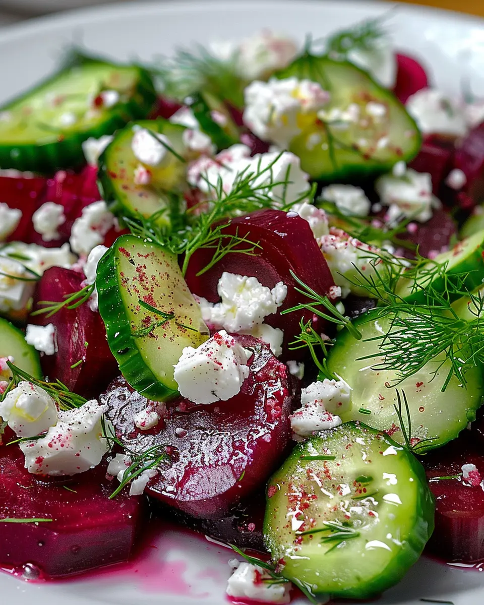 In closing, this beet salad with feta, cucumbers, and dill is not only a treat for your taste buds but also a celebration of vibrant colors and fresh ingredients. This dish is perfect for both a hearty lunch or a light dinner, making it a versatile addition to your weeknight meals. The natural sweetness of beets pairs beautifully with the tangy feta, while the crisp cucumbers add refreshing crunch. Plus, it’s packed with nutrients that support a healthy lifestyle. Why not whip up this salad today and experience the delightful flavors for yourself? You may find it becoming a staple in your weekly meal rotation!