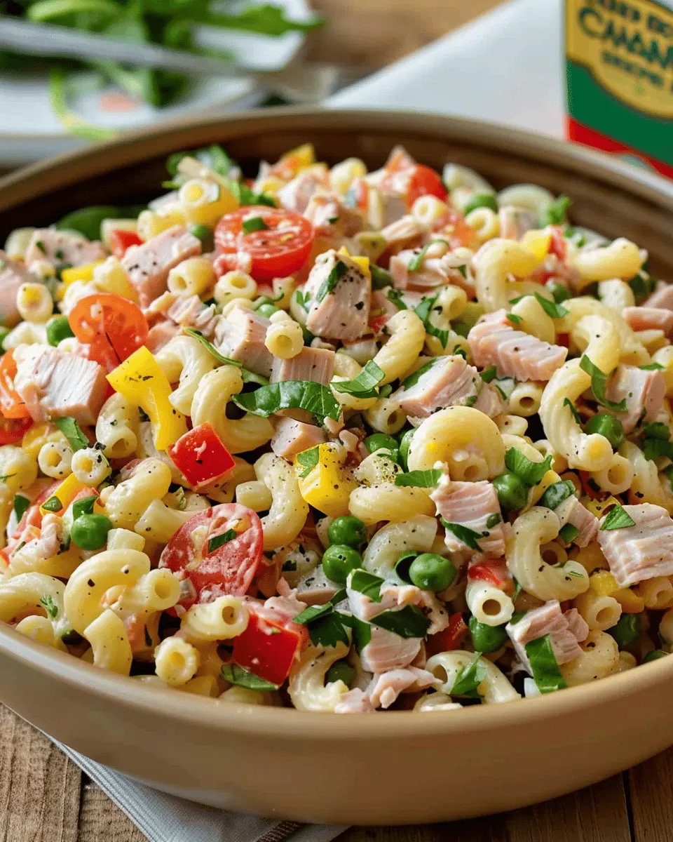 You can make this dish your own by adding ingredients like Turkey Bacon for a savory crunch or Chicken Ham for a protein boost. Serve it chilled for a refreshing summer meal or a quick lunch option. With its versatility and deliciousness, this salad is sure to become a staple in your kitchen.