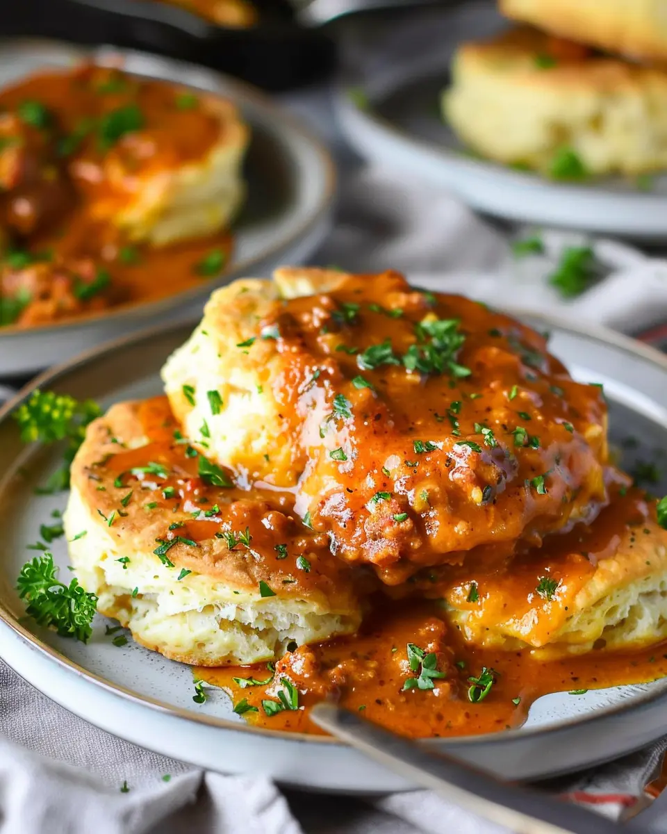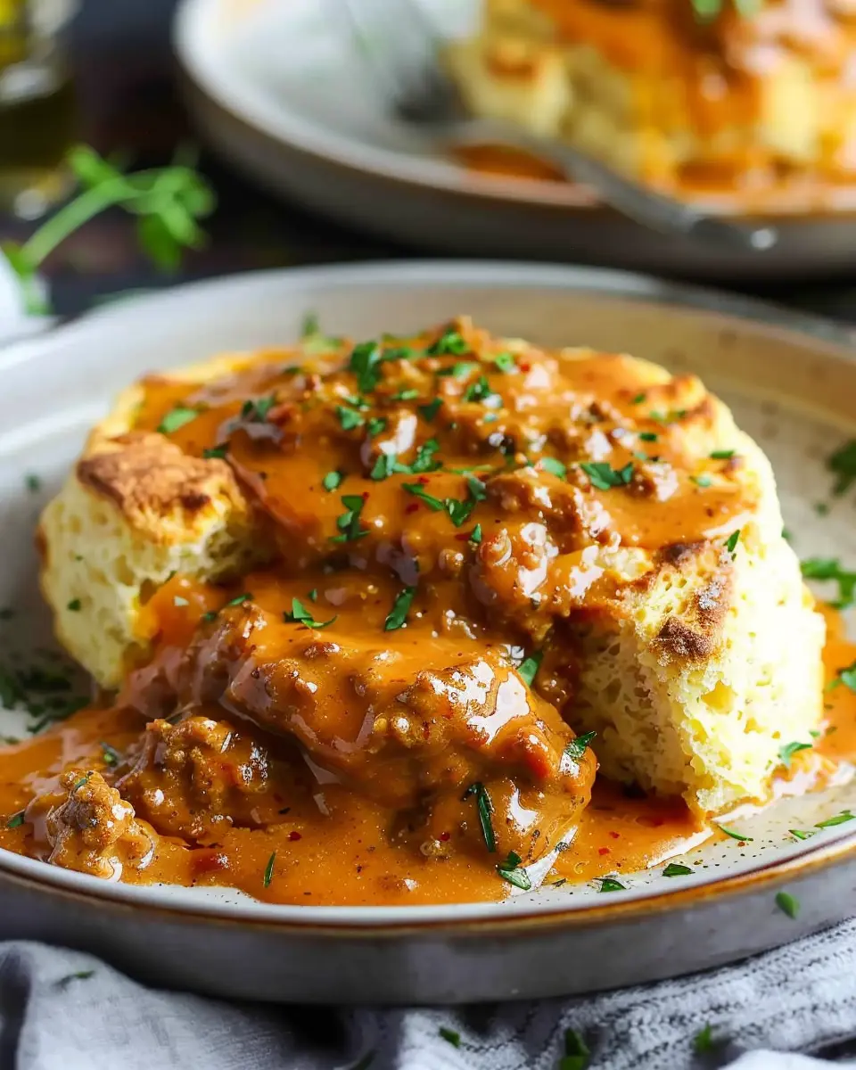 Whether you’re hosting friends for brunch or feeding a family, this dish is sure to impress. Imagine the delight on your loved ones’ faces as they dive into stacks of warm biscuits drizzled in thick, savory gravy. Even picky eaters can’t resist the allure of this comfort classic.