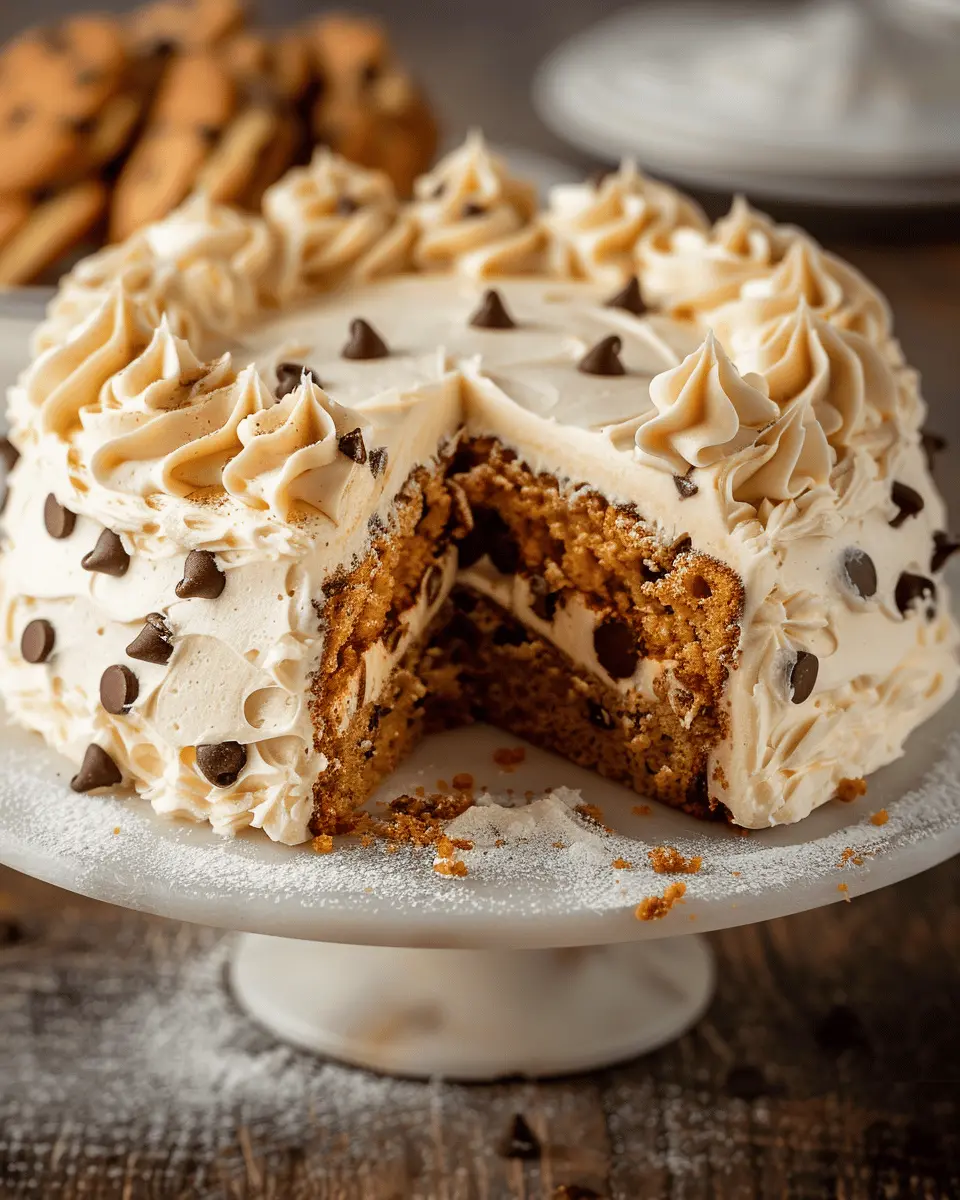 Keywords: Chocolate Chip Cookie Cake, Buttercream Frosting, dessert recipes, cake recipes