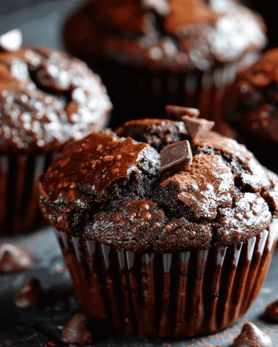 Indulge in the rich and decadent taste of homemade chocolate muffins. These treats are perfect for any chocolate lover looking for a sweet fix!