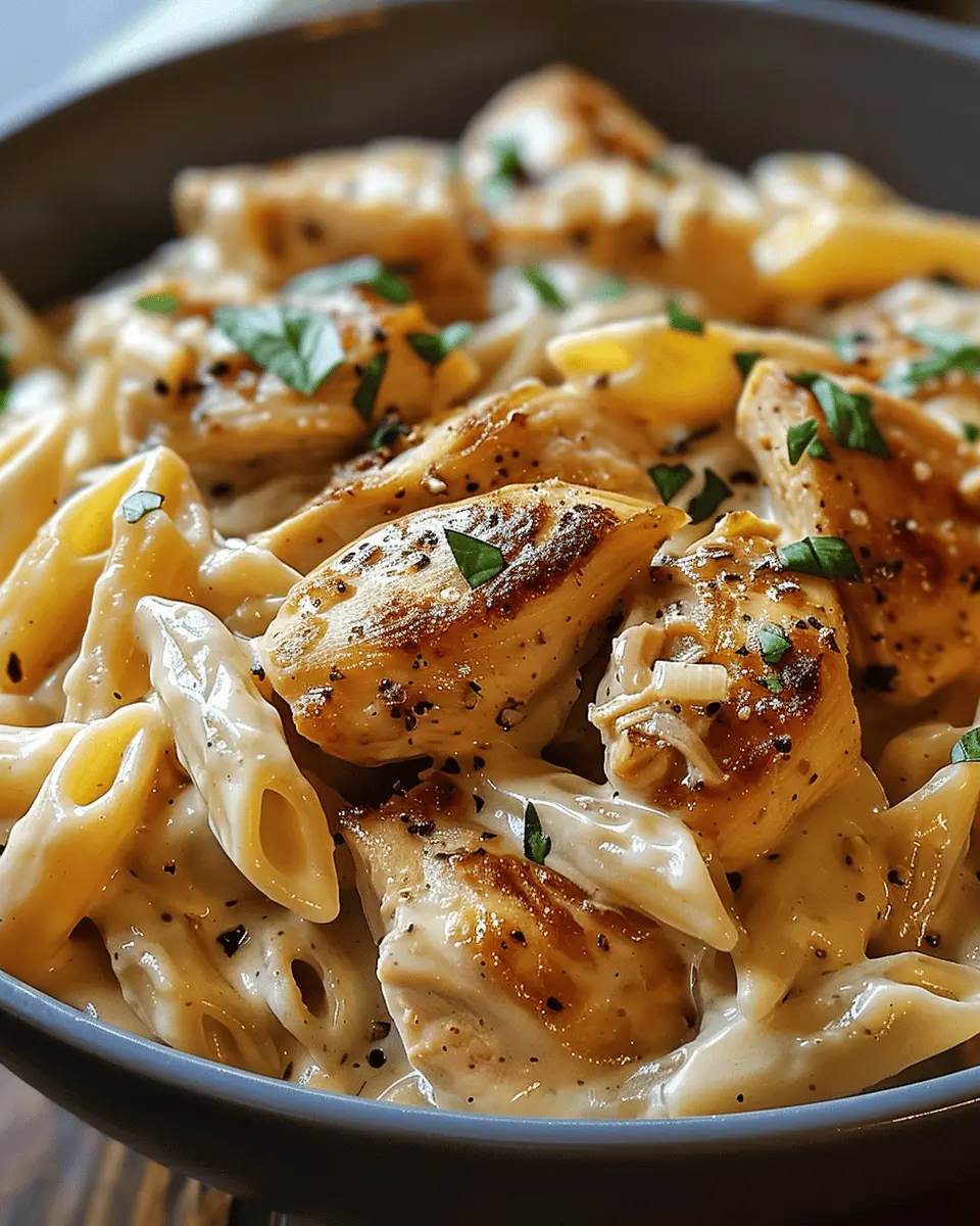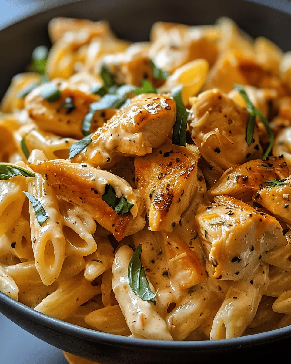 Feel-good comfort food: There’s something incredibly satisfying about creamy pasta dishes. The creaminess balances out the seasoning beautifully, enveloping the chicken and pasta in rich flavors that make each mouthful a dreamy experience.