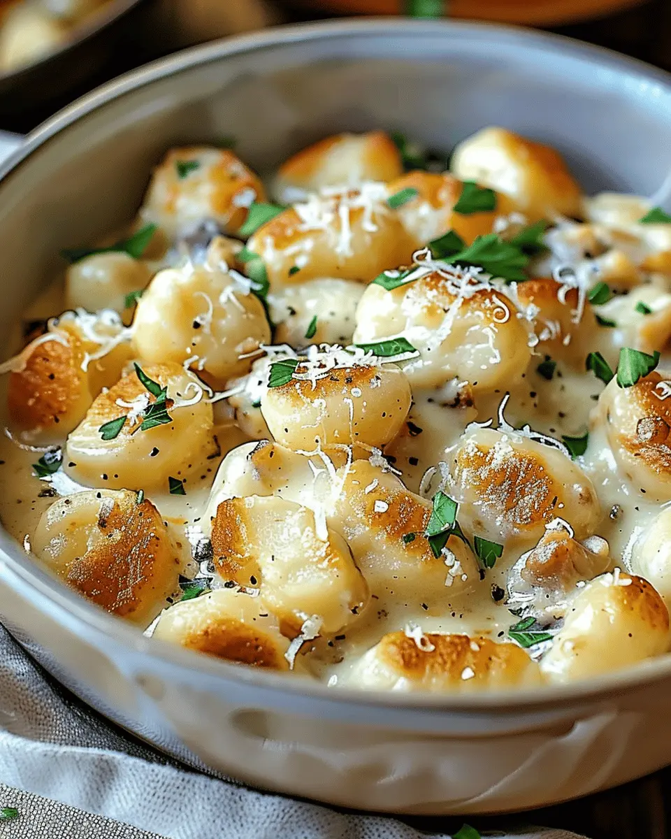 Finally, it’s time to serve this fantastic dish! Plate your creamy gnocchi, and if you’re feeling gourmet, add a sprinkle of parsley or a few extra shards of cheese on top.