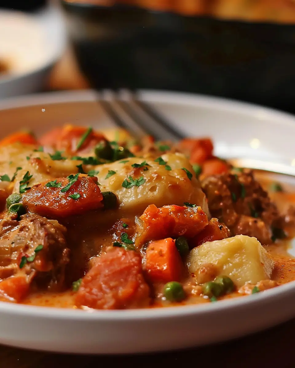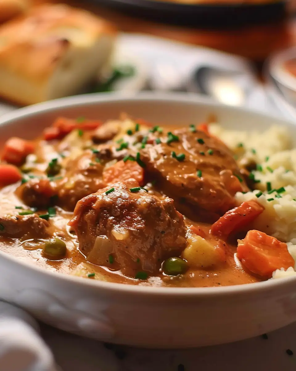 Creamy German Goulash is a rich and flavorful dish that combines tender meat with a creamy sauce.