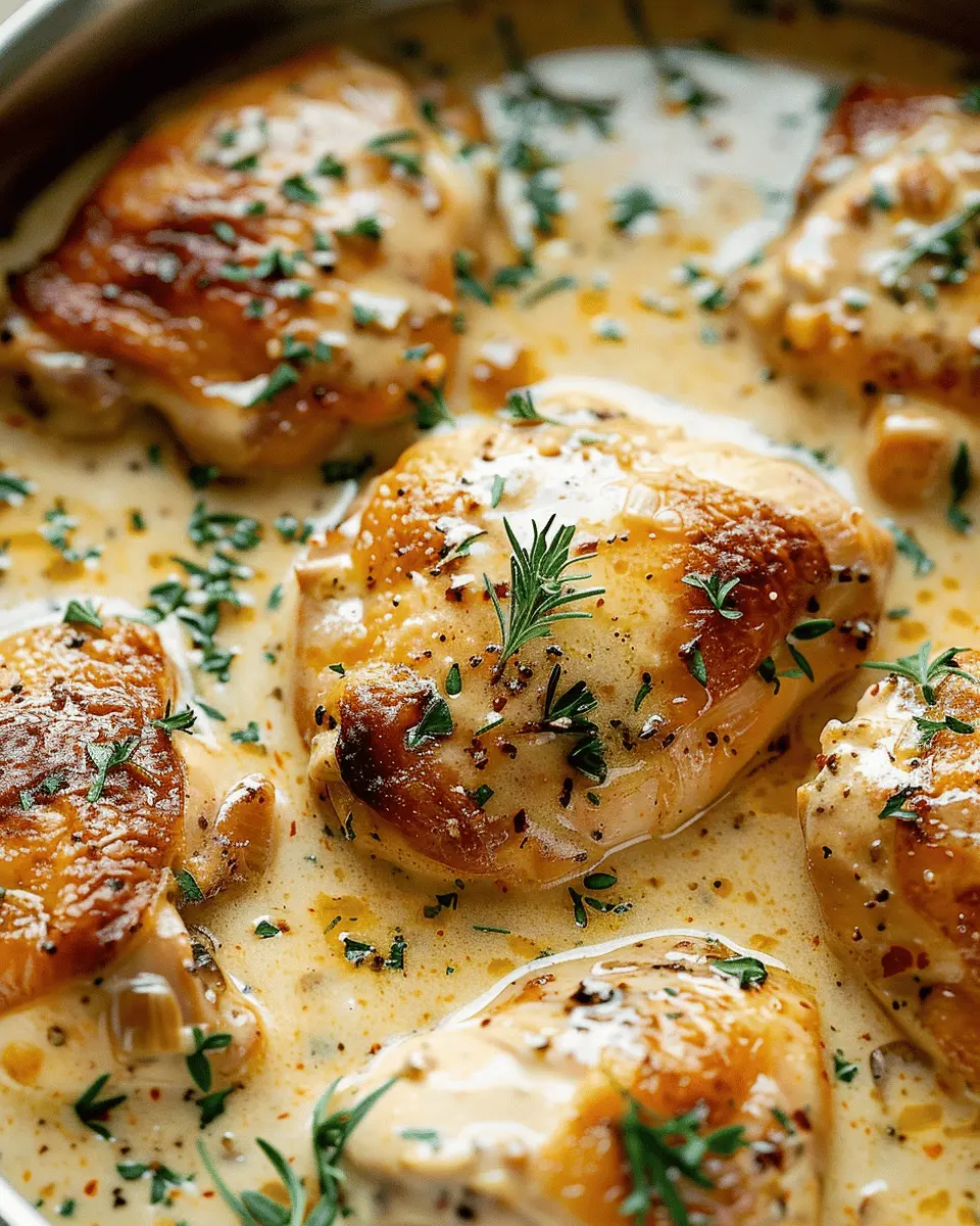 Carefully return the seared chicken thighs to the skillet, spooning the creamy sauce over them. Make sure each piece is coated generously. This is where all those flavors come together!