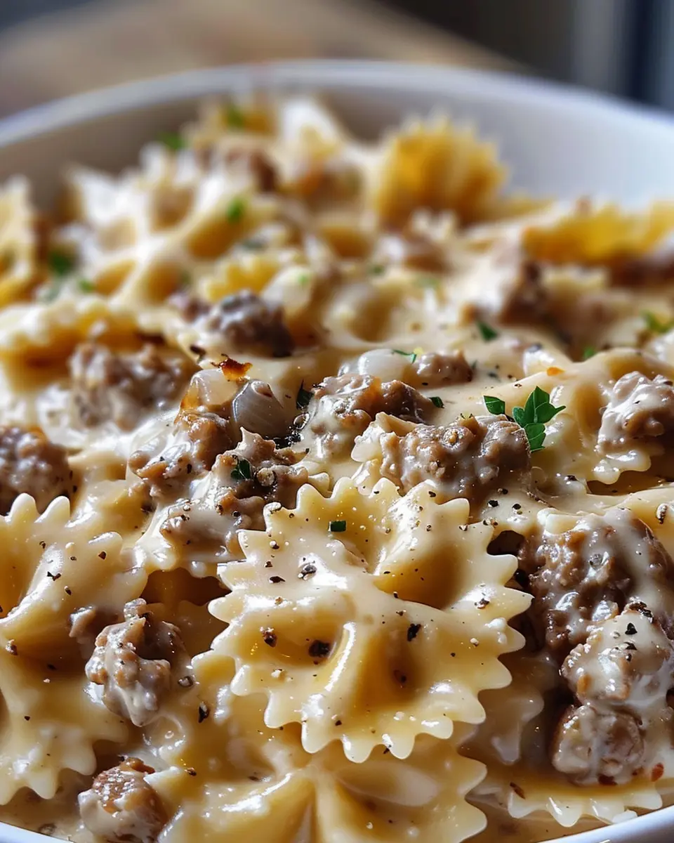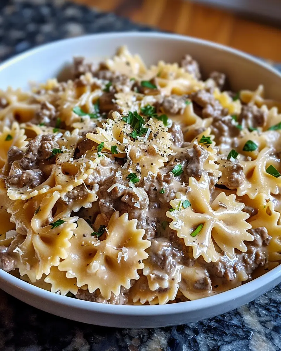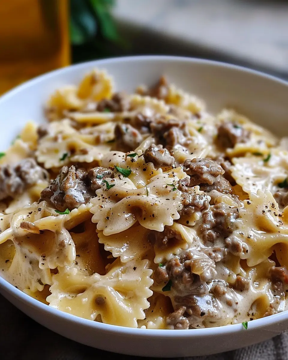 The cooking itself takes around 20-25 minutes. As the pasta boils, you’ll sauté the garlic and brown the beef, creating a delightful aromatic base. Meanwhile, the creamy sauce comes together beautifully, making your kitchen feel extra warm and inviting.