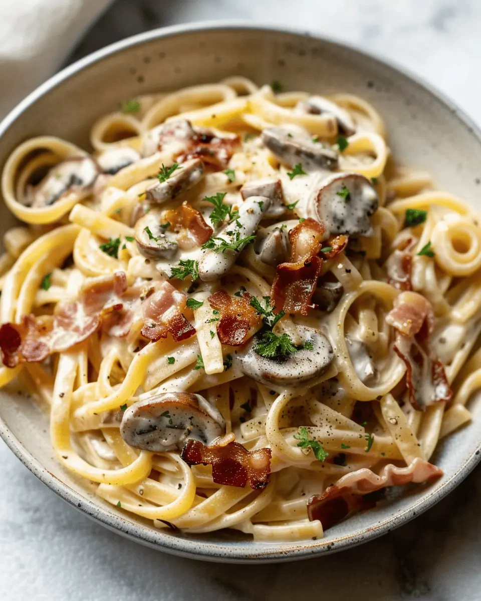 So, if you’re eager to impress your friends or simply treat yourself, this recipe is your perfect solution. With each bite, you’ll appreciate the creamy richness contrasting with the savory turkey bacon and earthy mushrooms. Ready to elevate your pasta game? Let’s dive into the ingredients and steps that will make your kitchen feel like a gourmet restaurant!