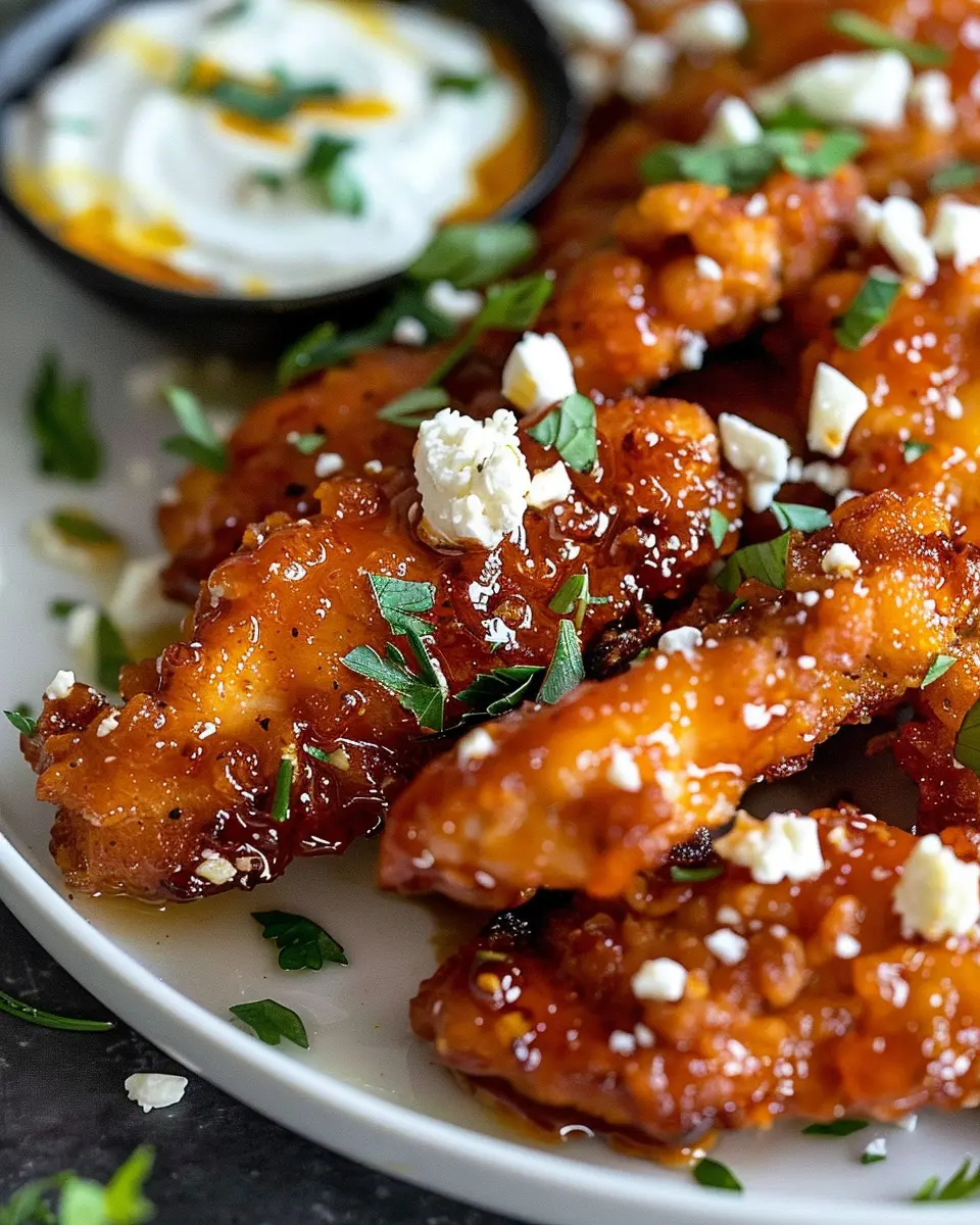 In conclusion, the crispy hot honey feta chicken combines flavors that are both exciting and comforting, making it an excellent choice for your next meal. Imagine the crispy coating, the sweet heat of the honey, and the rich creaminess of feta all melding together in a delicious bite. Not only is this dish easy to prepare, but it also impresses family and friends alike. Serve it up with your favorite sides, such as roasted vegetables or a fresh salad, and watch as it becomes a new staple in your dinner rotation. Don’t forget to share your thoughts and tag us if you try this recipe!