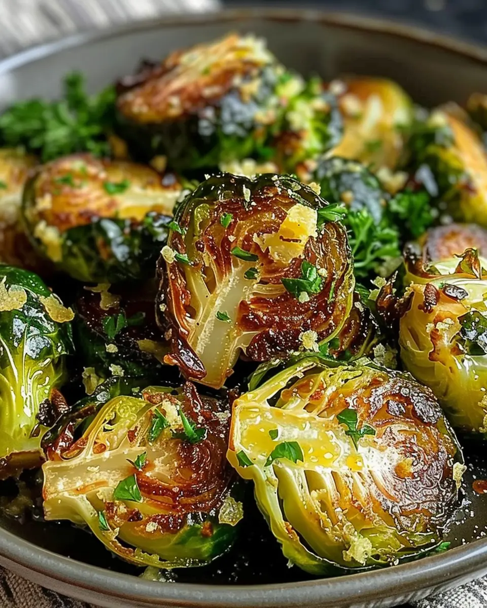 Keywords: Garlic Butter, Roasted Brussels Sprouts, Turkey Bacon, Side Dish Recipe, Flavorful Recipes