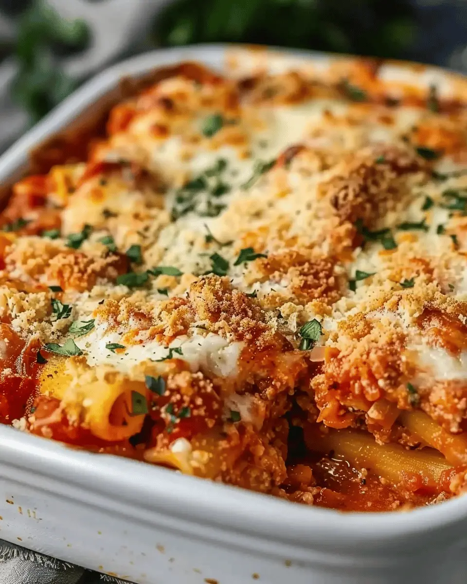 What’s a chicken parmesan casserole without cheese? Generously sprinkle your favorite cheeses on top—mozzarella or a blend of mozzarella and provolone work wonders. A little grated Parmesan can also add that luxurious touch.