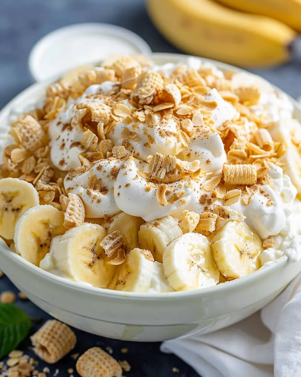 What’s a delicious banana pudding fluff salad without the right drink? For a refreshing twist, pair it with a chilled hibiscus iced tea or a creamy coconut smoothie. Both options complement the sweet and fluffy nature of the salad without overpowering it. If you’re in the mood for something fizzy, a sparkling lemon-lime beverage brings a wonderful contrast to the dish’s richness. These drink ideas are sure to keep your gathering vibrant and enjoyable!