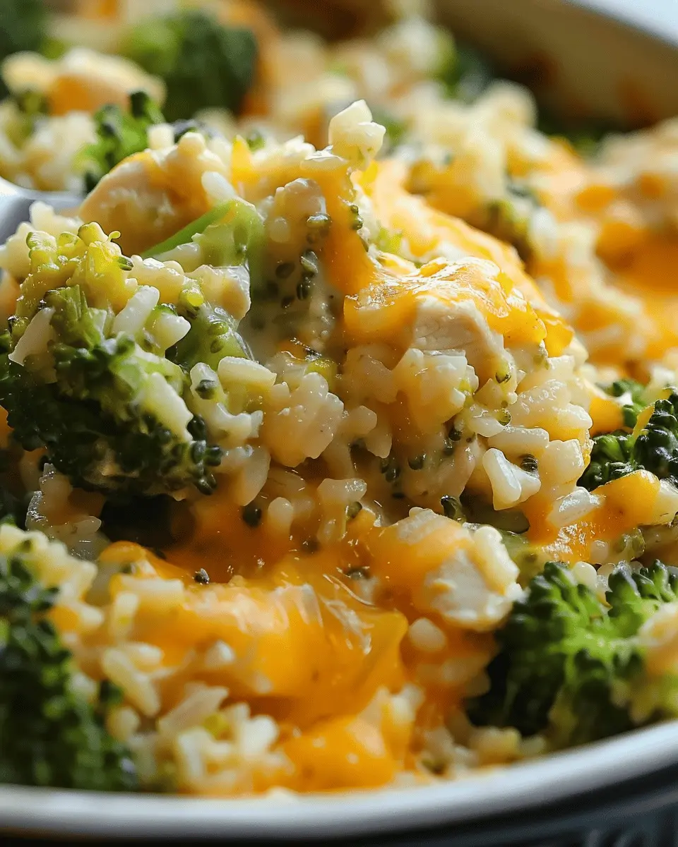 - Rice: Long-grain or jasmine rice works best; it cooks evenly with the chicken and broccoli and absorbs the cheesy goodness.