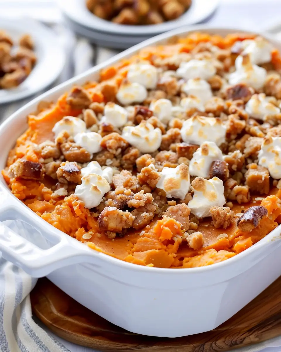 A comforting and indulgent sweet potato casserole that is perfect for your family gatherings.