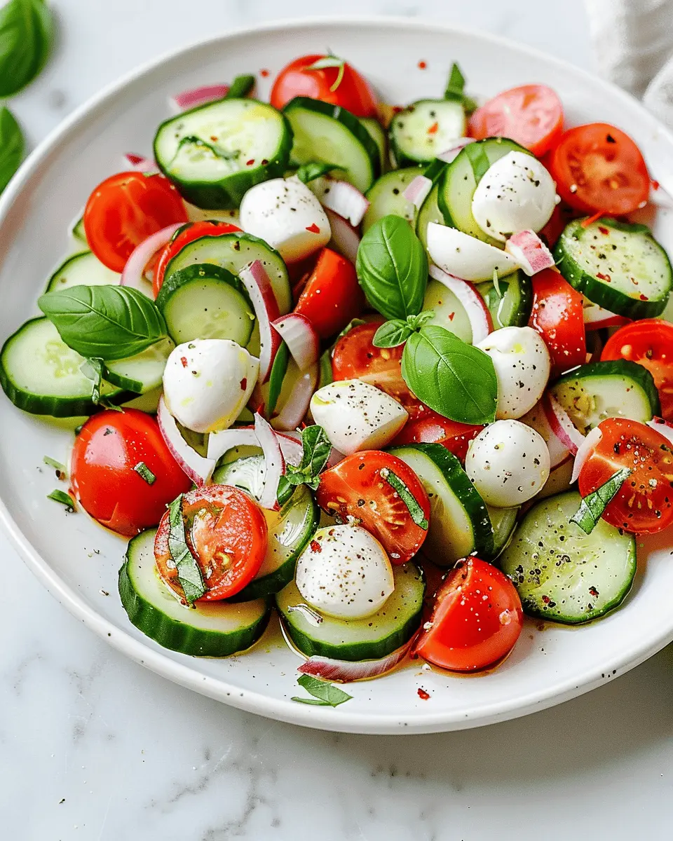 PrintFresh Cucumber Caprese Salad: A Refreshing Twist on Tradition