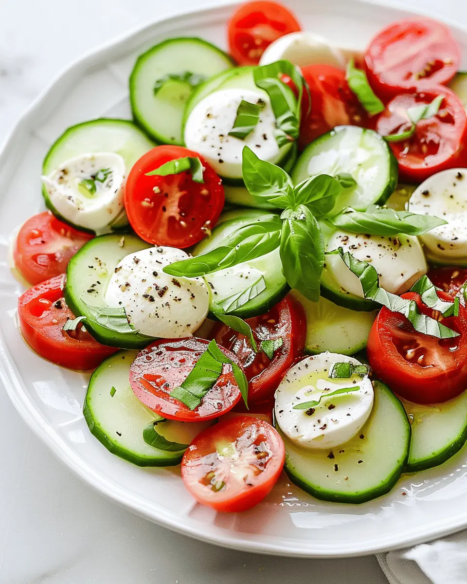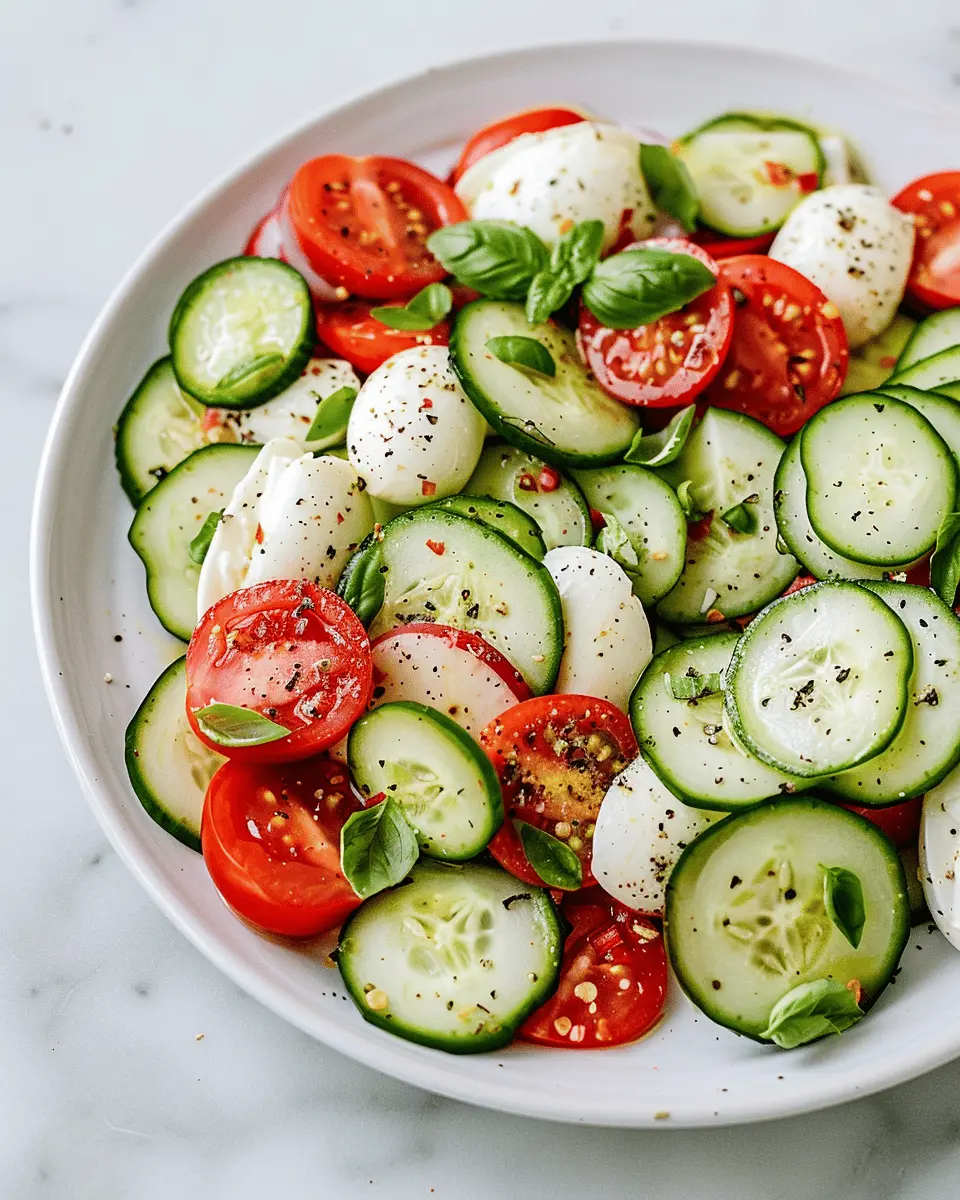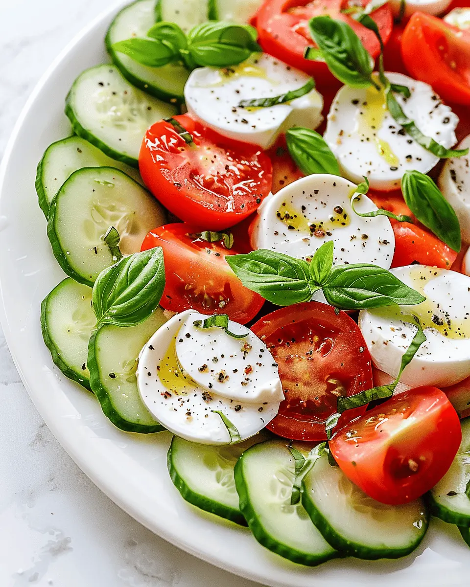 Keywords: Cucumber Salad, Caprese Salad, Fresh Salad, Summer Recipe
