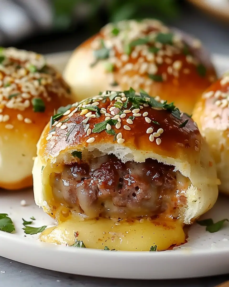 Delicious and indulgent garlic parmesan cheeseburger bombs that are perfect for any occasion!