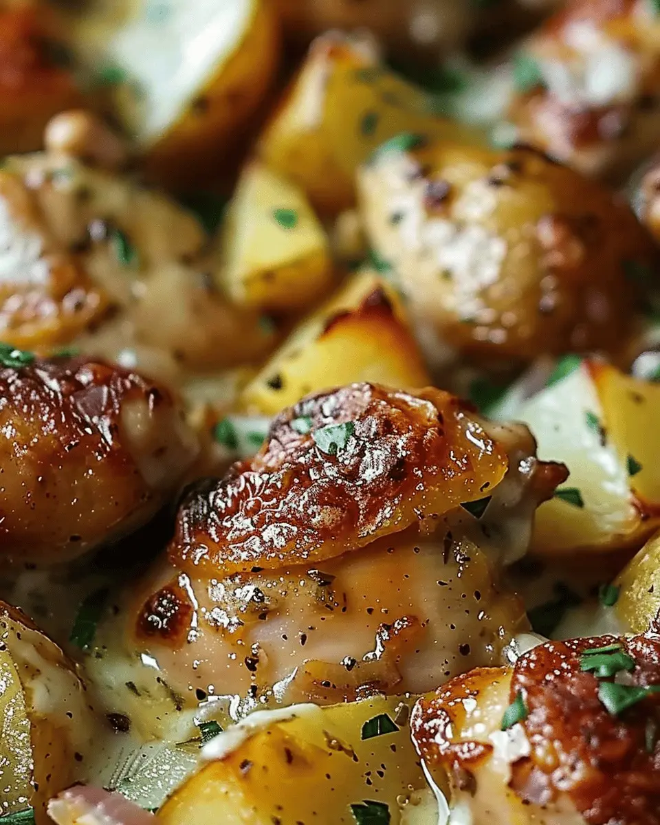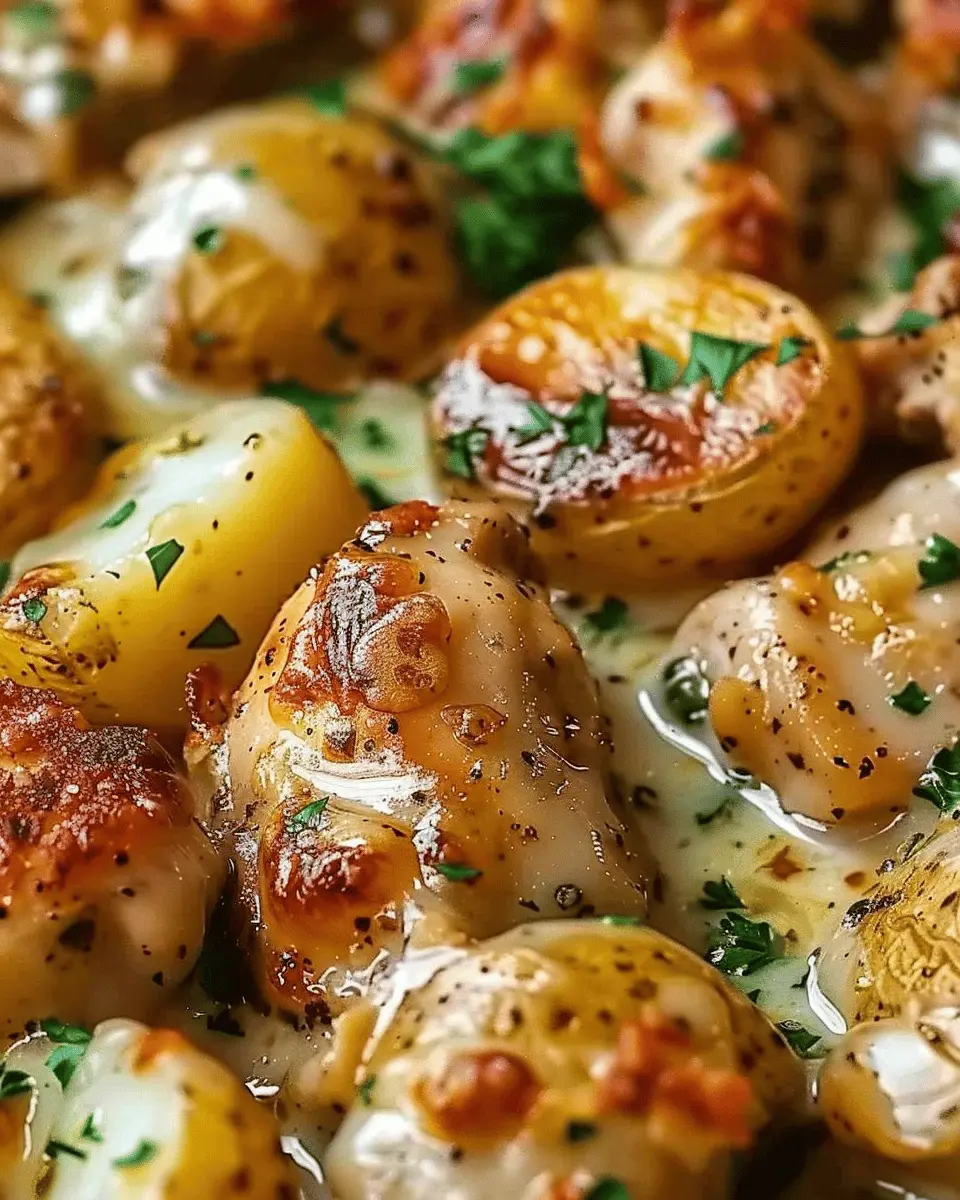Once everything is perfectly cooked and the kitchen smells divine, it’s time to serve. Ladle the chicken and potatoes onto plates, ensuring you get plenty of that glorious garlic Parmesan sauce.
