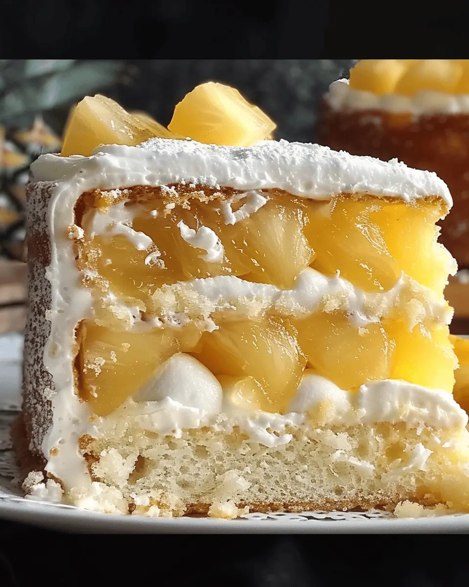 Keywords: Juicy Pineapple Heaven Cake, Tropical Cake, Indulgent Dessert
