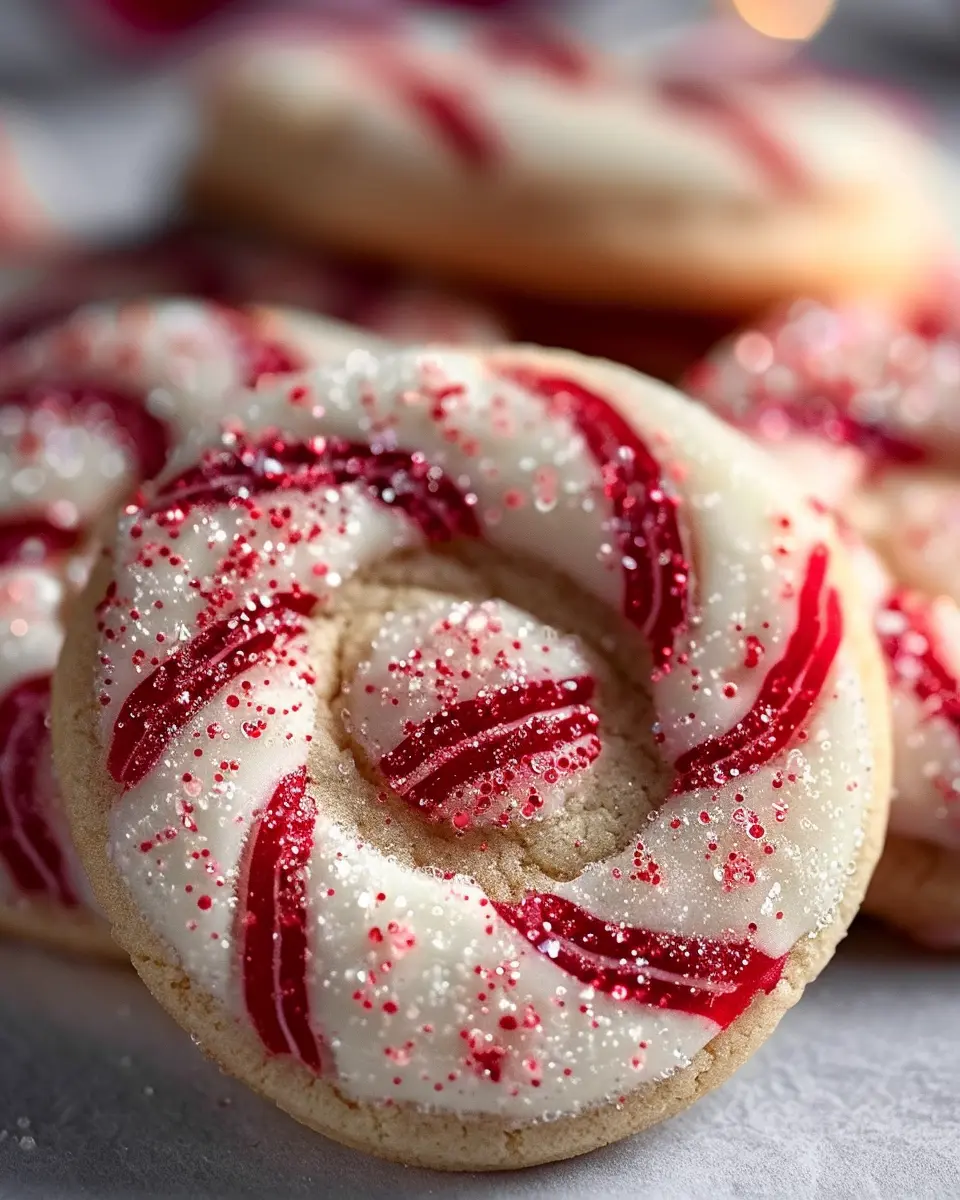 After baking, let the cookies cool on the sheet for a minute before transferring them to a wire rack. Once they’re cool, sprinkle with crushed candy canes for that sweet, minty crunch. These cookies are not just delightful to eat; they also make for stunning gifts and festive decorations!