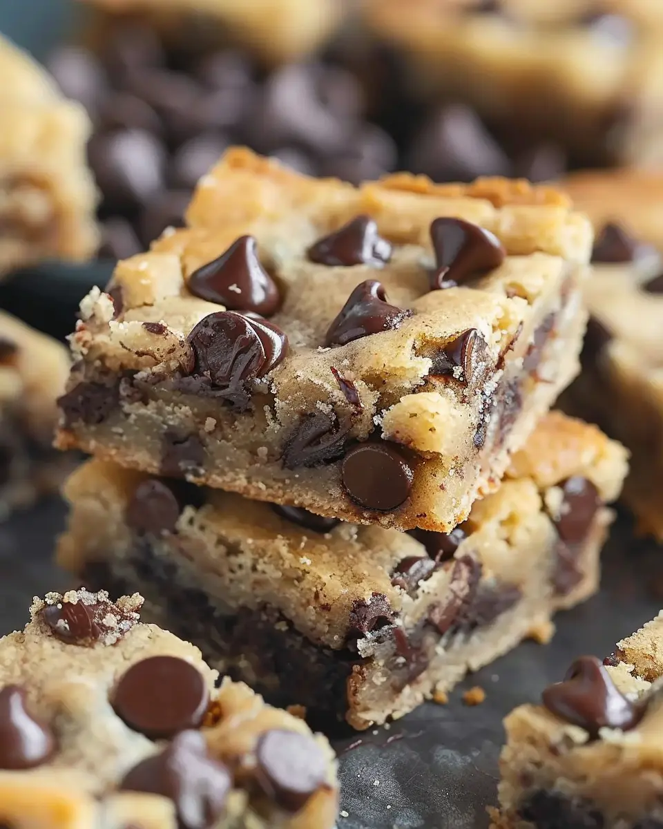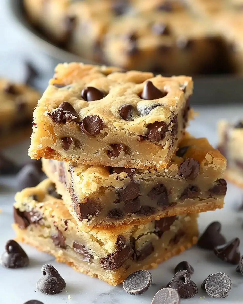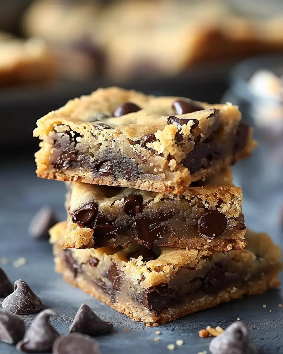 Indulge in the rich, buttery flavors of these melt-in-your-mouth chocolate chip cookie bars. Perfect for satisfying those sweet cravings!