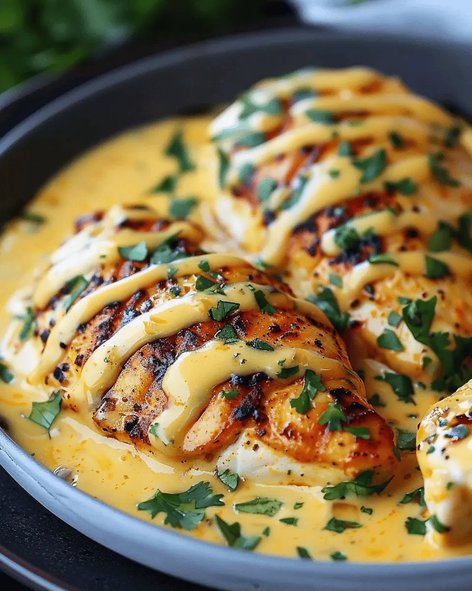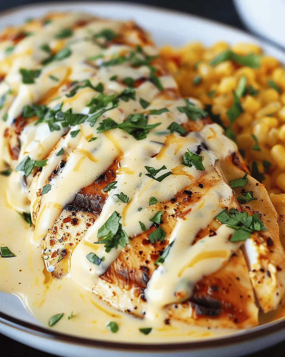 Your Mexican chicken with cheese sauce is finally ready to shine on your dinner table. Serve it hot with your choice of sides—think warm tortillas, a refreshing salad, or some spicy Mexican rice. For an added burst of flavor, consider garnishing with fresh cilantro and diced jalapeños.