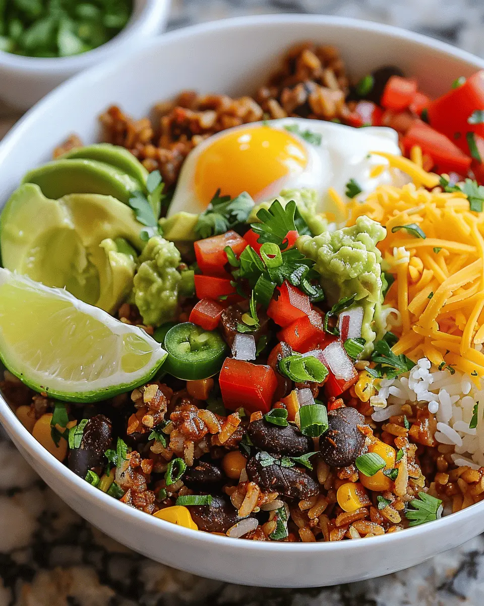 For those embracing a plant-based lifestyle or simply looking to mix things up, the vegetarian taco rice bowl is a delightful option. Start with a base of fluffy brown rice, then load it with: