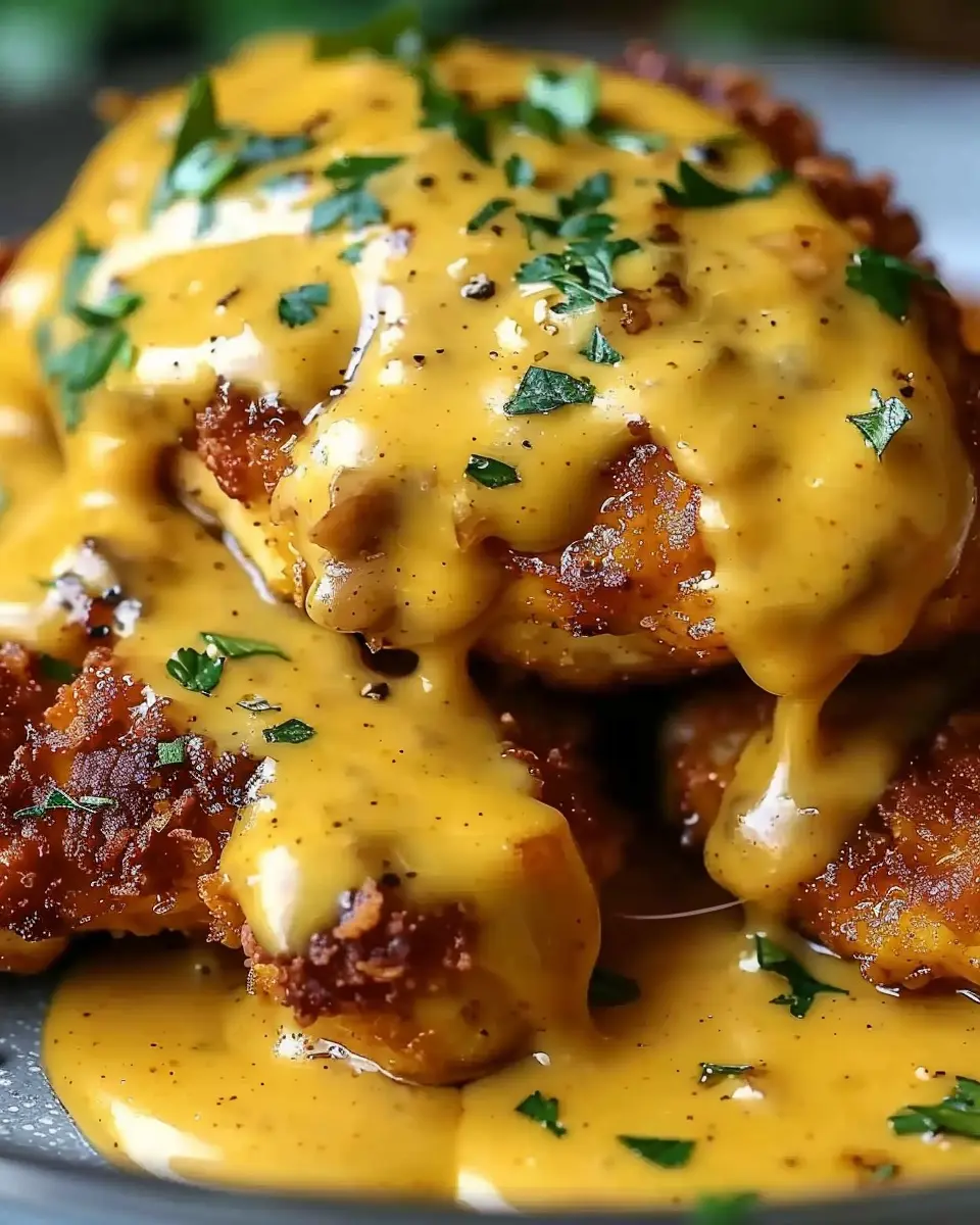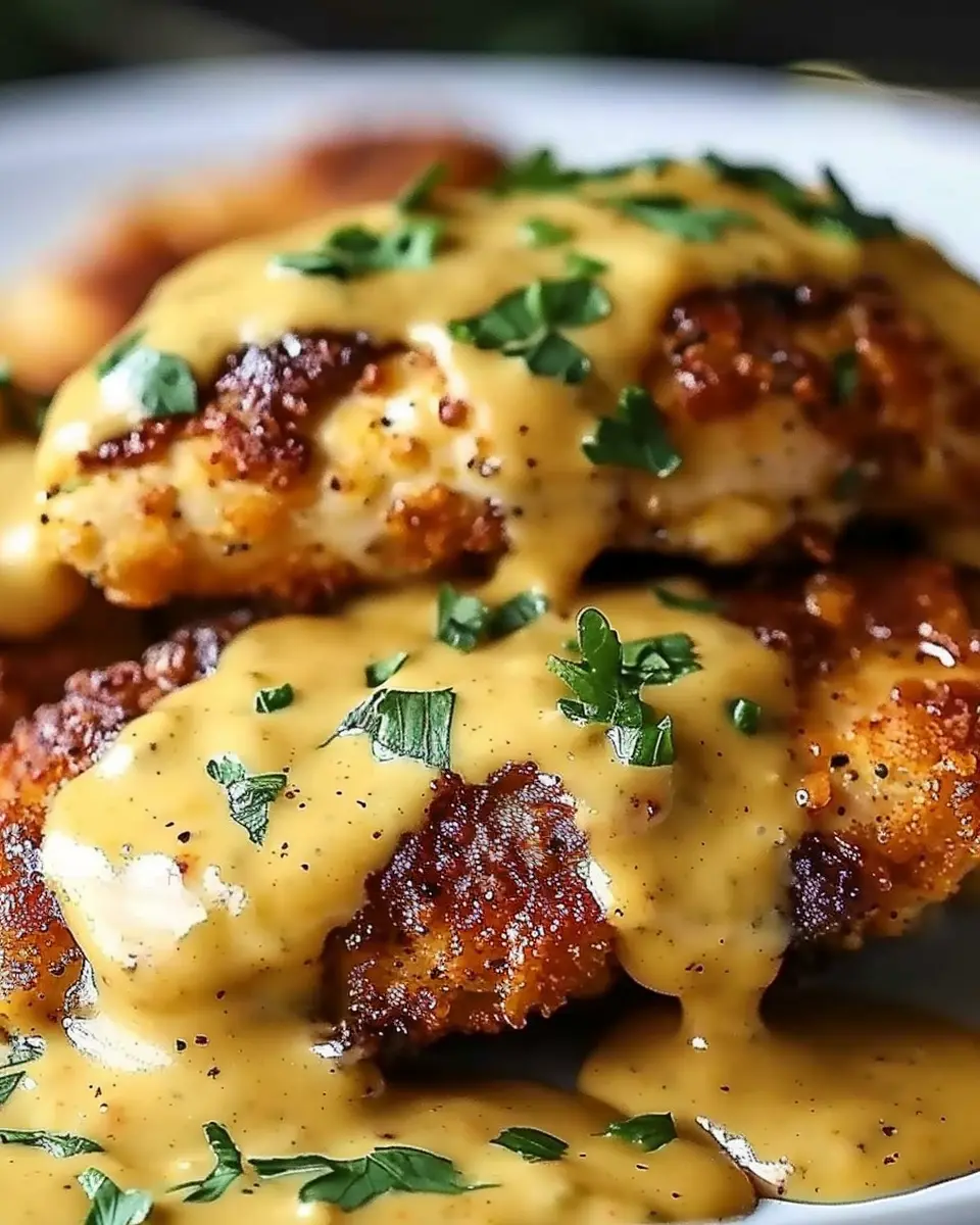 Once your chicken is out of the oven and cooled slightly, it’s time to plate! Drizzle the mustard-cheddar sauce liberally over the crispy chicken. Consider garnishing with chopped parsley or even some green onions for a pop of color. Serve with your favorite sides, and enjoy every morsel of this delicious homemade masterpiece.