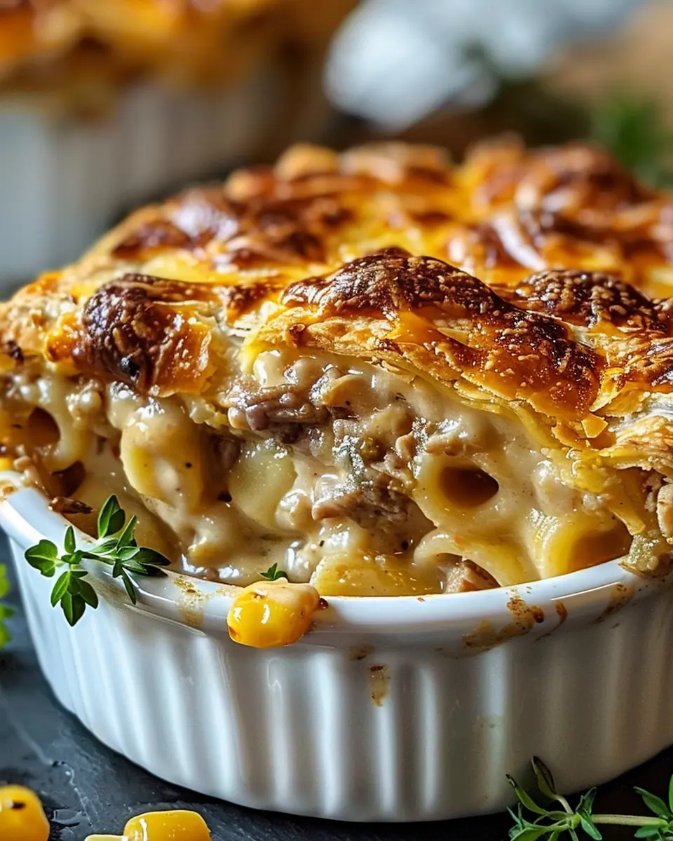 • Serve and Enjoy: Spoon the quick chicken pot pie pasta into bowls and garnish with fresh herbs like parsley or thyme if you like.