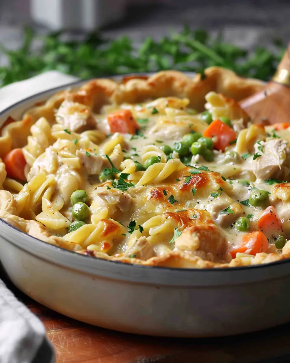 PrintQuick Chicken Pot Pie Pasta: Easy Comfort Food with Turkey Bacon
