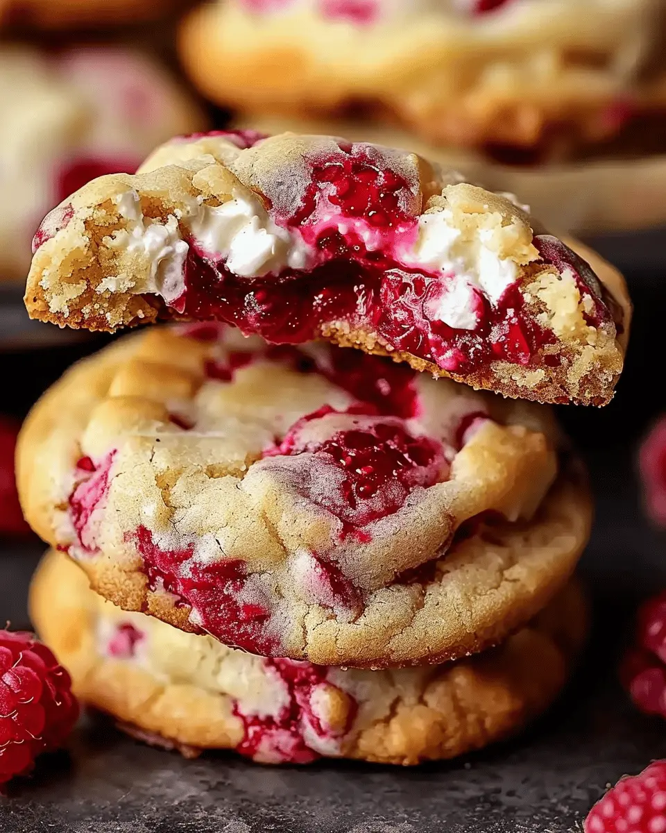 Indulge in the delightful combination of raspberry and cheesecake with these irresistible cookies.