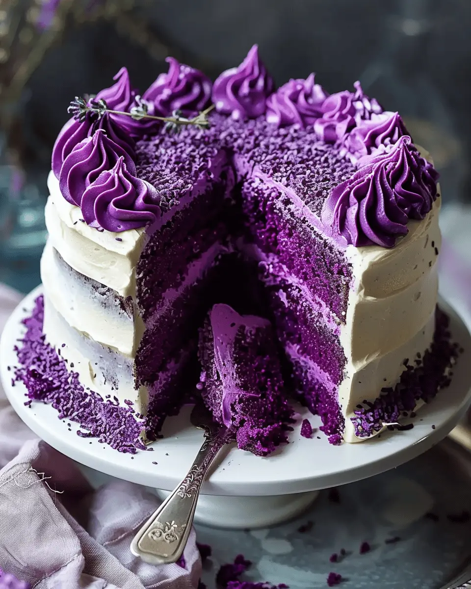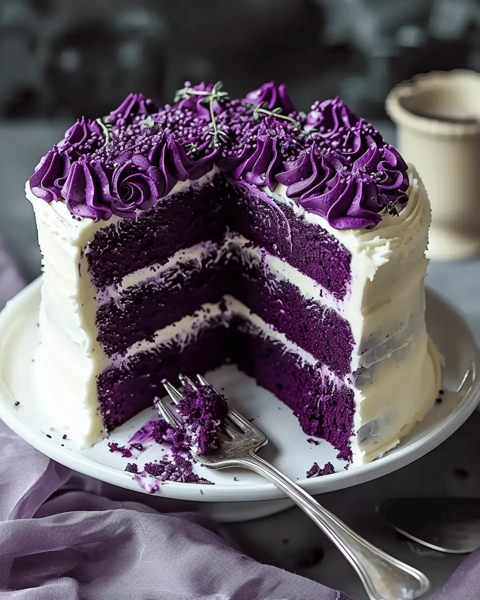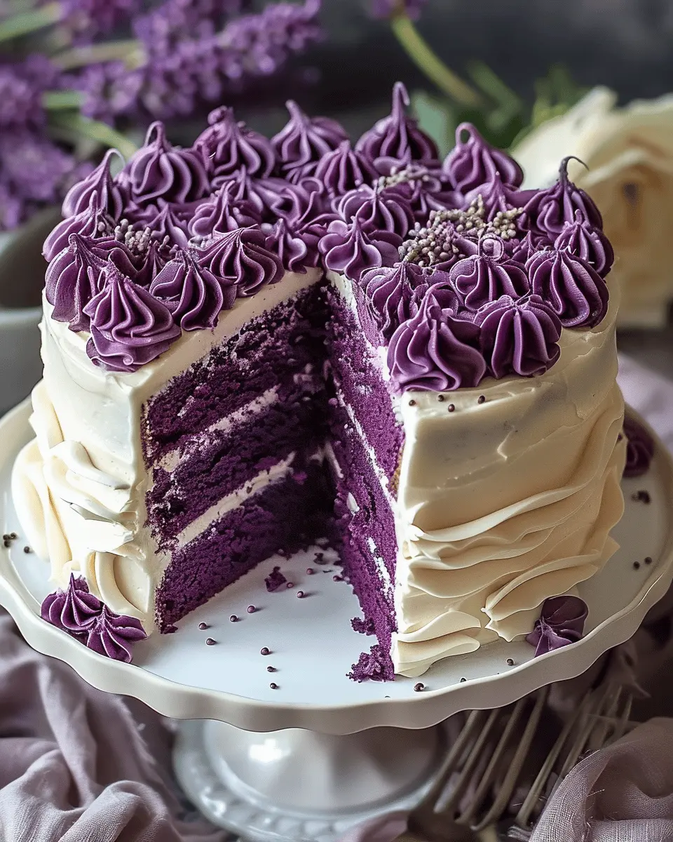 PrintRoyal Purple Velvet Cake with Creamy Vanilla Frosting Delights for Home Chefs