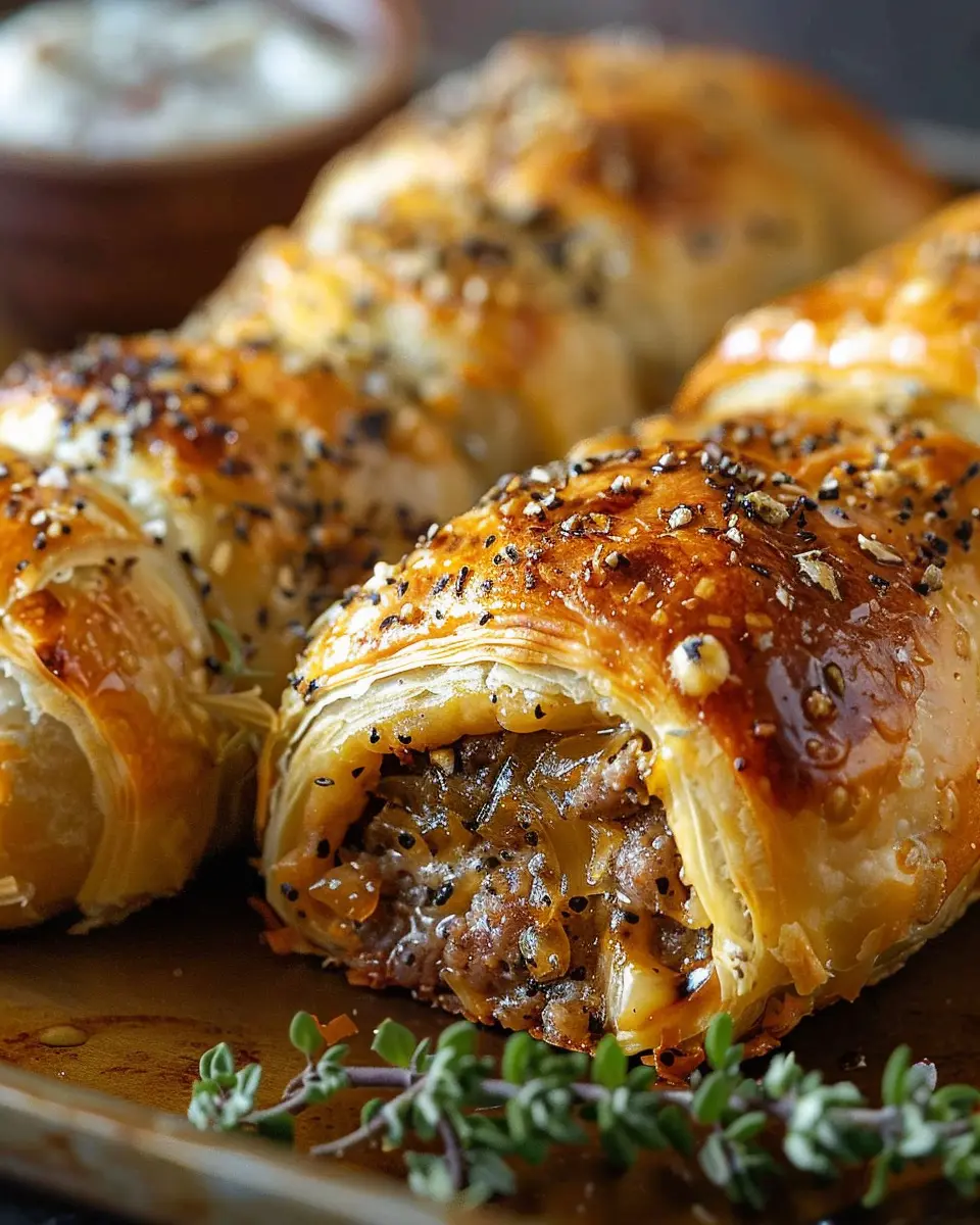 These Savory French Onion Sausage Rolls are golden, flaky, and full of flavor, making them a perfect appetizer or snack.
