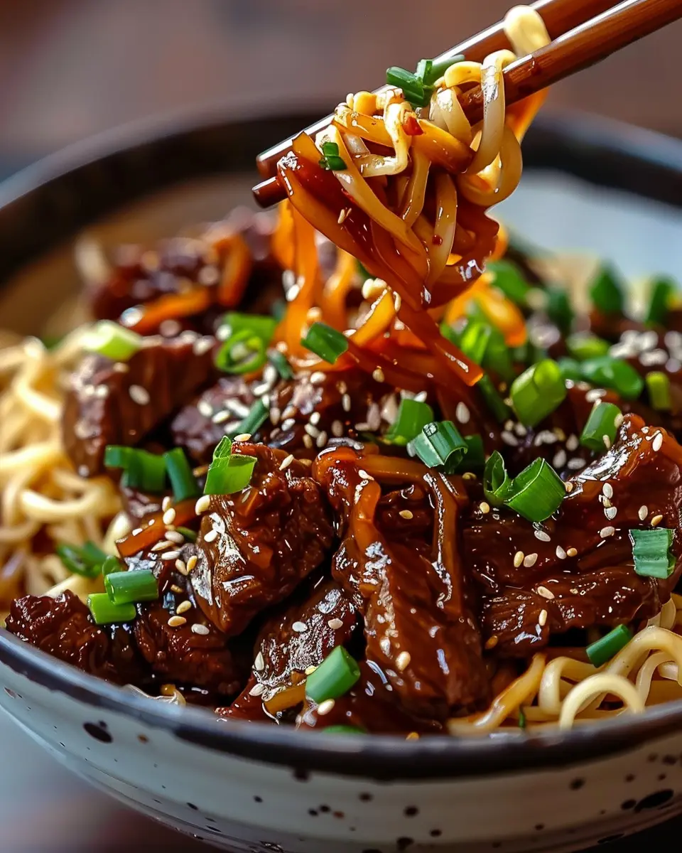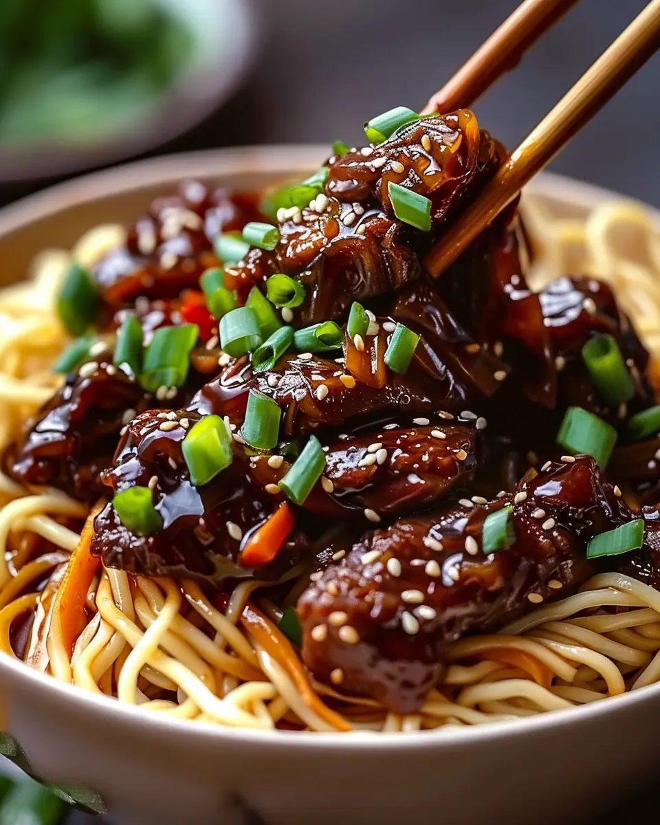 PrintSticky Beef Noodles: Easy and Indulgent Homemade Delight